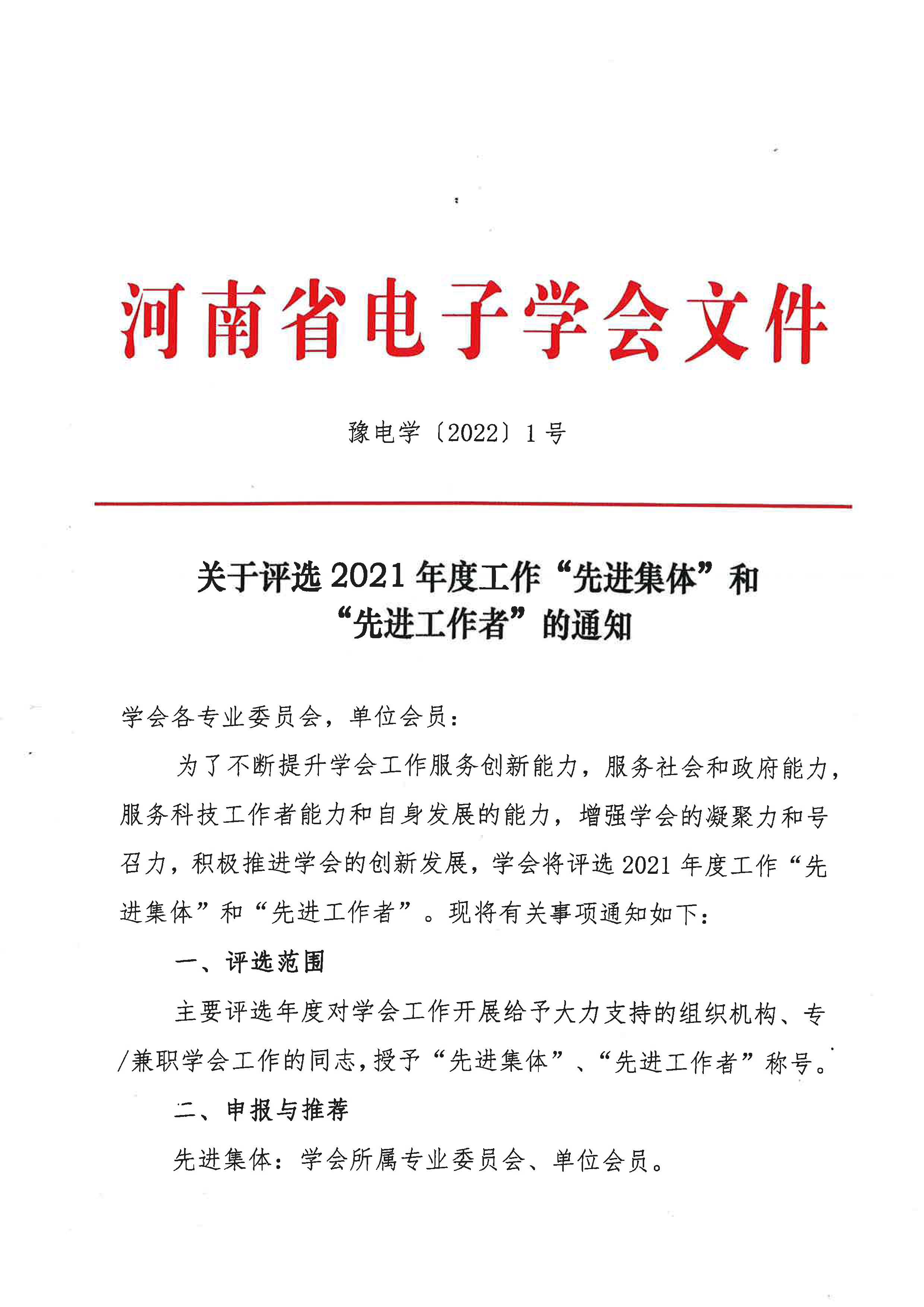 关于评选2021年度工作“先进集体”和“先进工作者”的通知